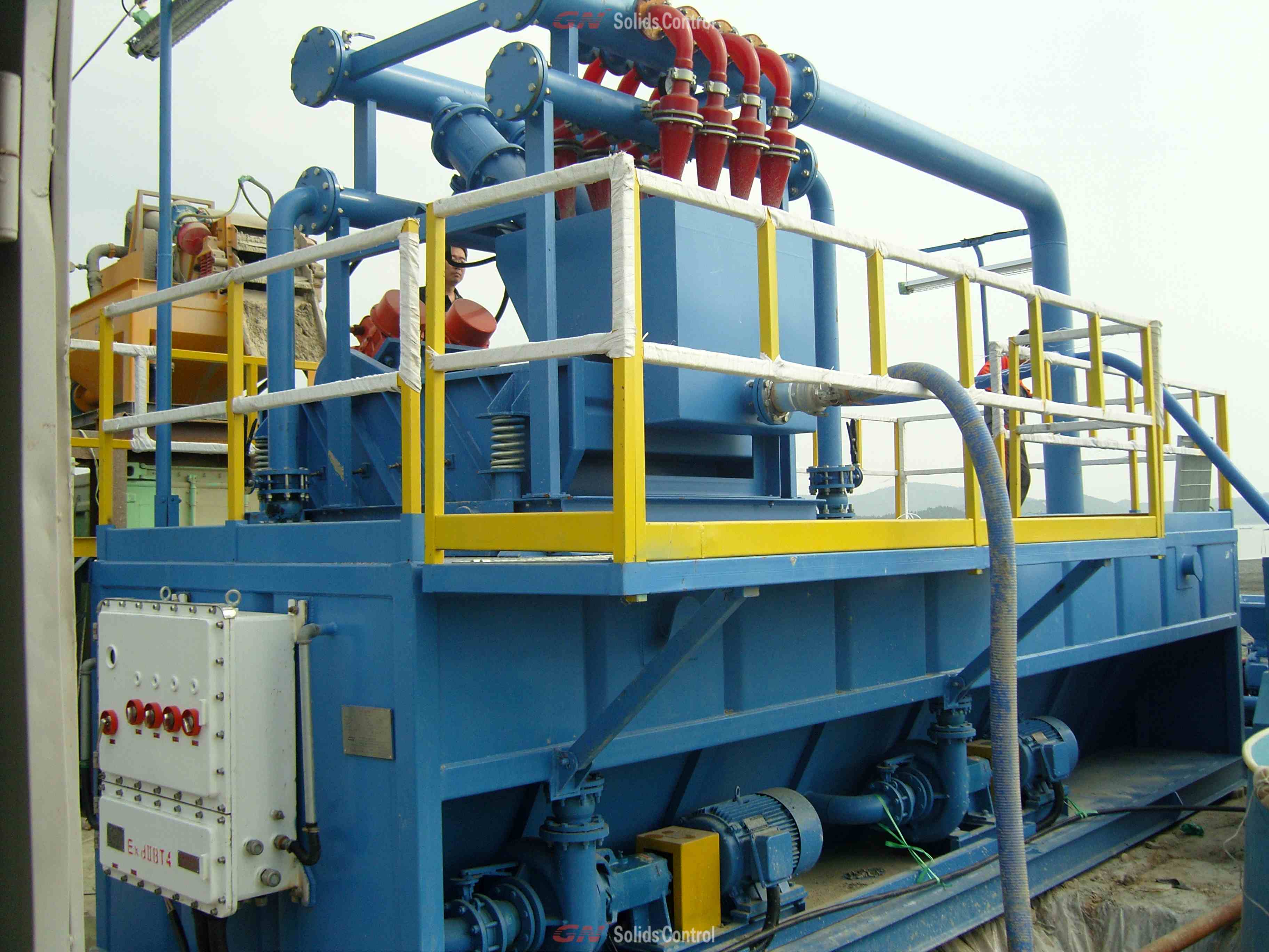 ?好消息!技術(shù)服務(wù)工程師說,“我公司發(fā)往韓國的泥漿回收系統(tǒng)運(yùn)轉(zhuǎn)使用效果良好” 該套系統(tǒng)是為了韓國非開挖工程公司的客戶制造。泥漿回收系統(tǒng)也叫泥漿凈化系統(tǒng), 該套設(shè)備包括:振動(dòng)篩,除砂器,除泥器,砂泵,泥漿攪拌器,射流混漿裝置。 ? ? ?工程師到達(dá)現(xiàn)場,首先安裝電路和管道。