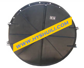 節(jié)能型側(cè)翻式拍門運(yùn)行中的兩大關(guān)鍵點(diǎn)是:止水密封功能和啟閉靈活度。拍門的止水裝置為結(jié)構(gòu)型門葉,密封裝置為橡膠;門葉必須具有均勻的受力設(shè)計(jì)(如:弧度、扇形加強(qiáng)筋),而密封橡膠中以丁晴橡膠最為理想,具有耐沖擊、抗老化和耐腐蝕的功能。