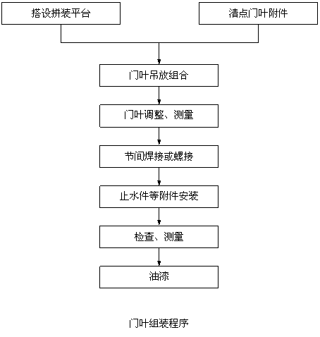 要求組裝前,在廠內或在門槽附近搭設拼裝平臺,平臺用型鋼或混凝土鋪設。搭設平臺時應考慮留出焊接、安裝附件和進行檢查測量的位置。