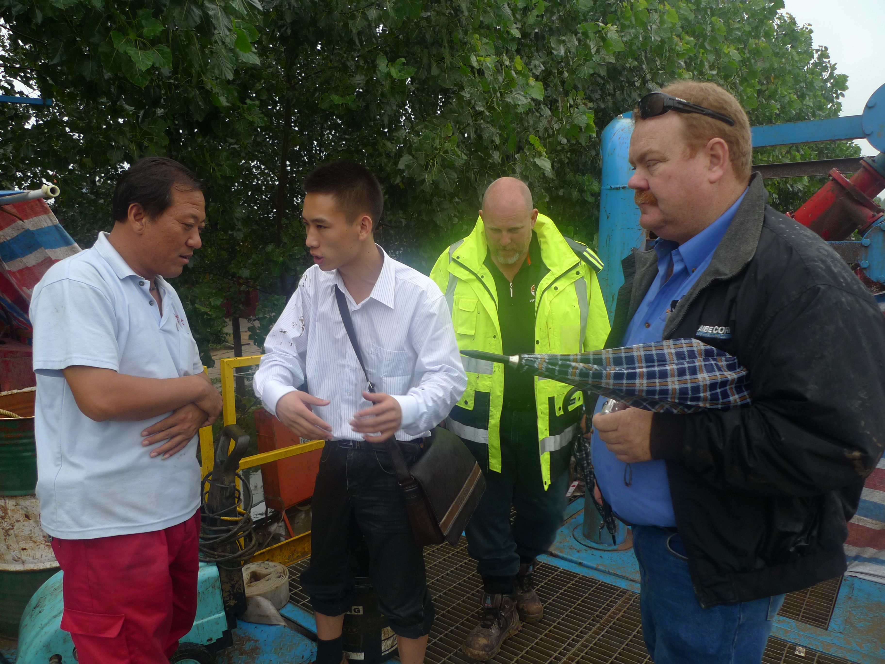????????????????????????????????????????????????????????????? ?澳大利亞客戶冒雨到到現(xiàn)場考察 ???????????????? 現(xiàn)場。到達(dá)現(xiàn)場后,應(yīng)客戶的要求,我們冒著雨登山泥漿罐,觀看設(shè)備的運(yùn)行情況。 益后,客戶豎起了大拇指。 話,他們還要購進(jìn)2套定向穿越系統(tǒng)。
